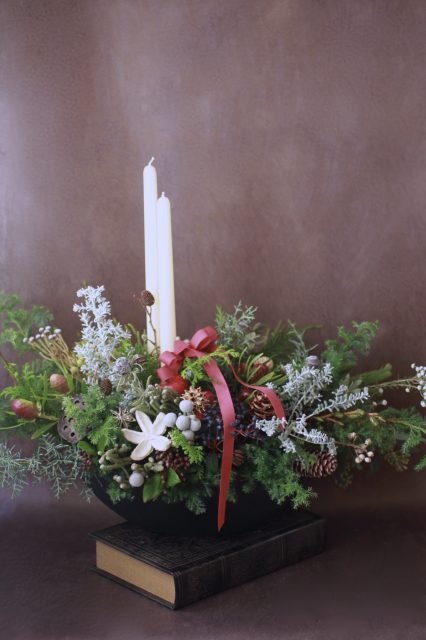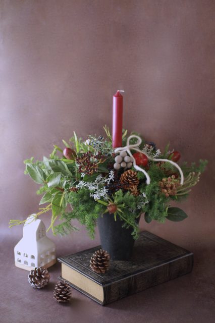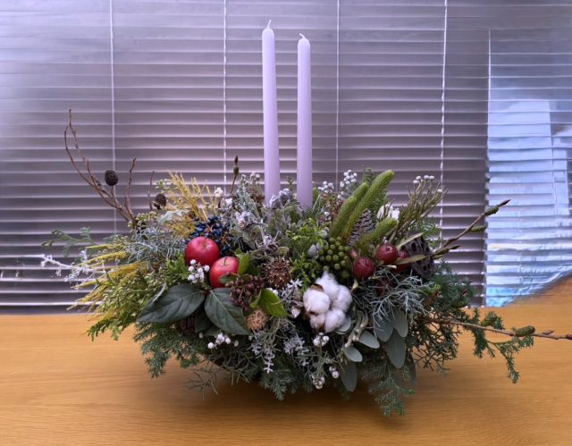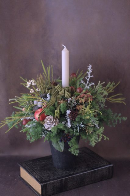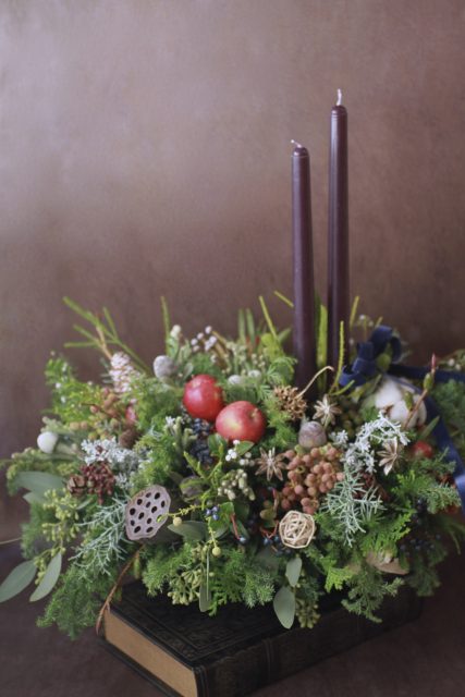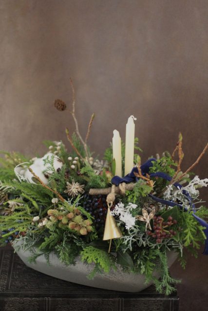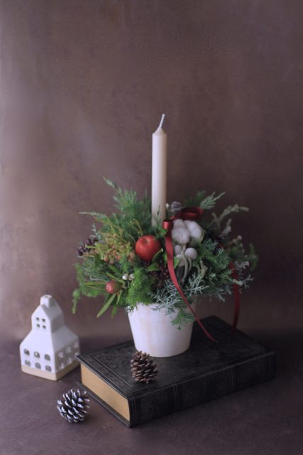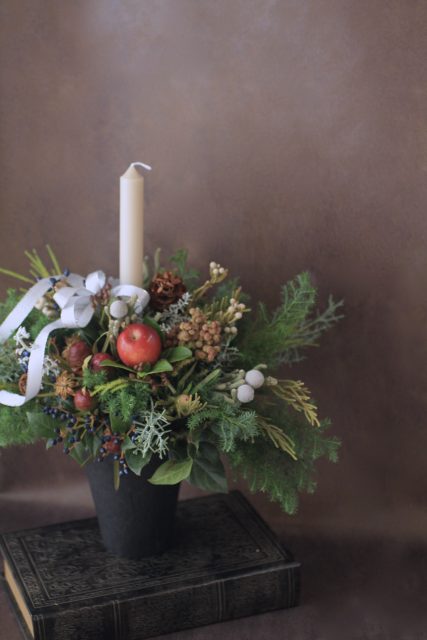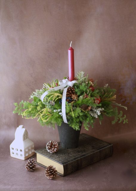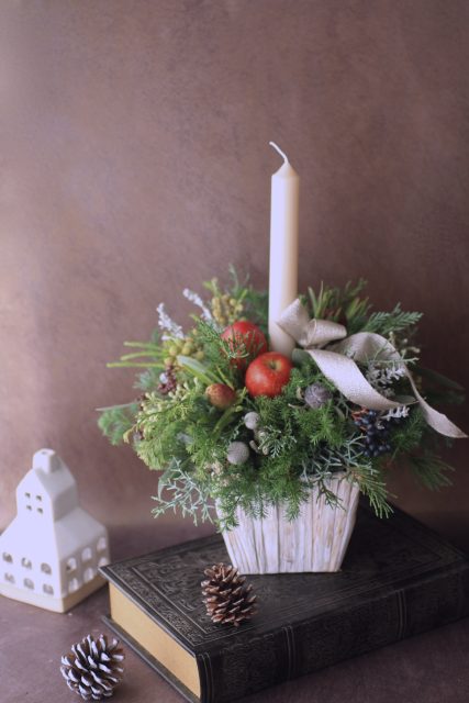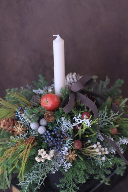 コニファーの森の香りの中で、キャンドルを使ったアレンジメントを作っていただきました。