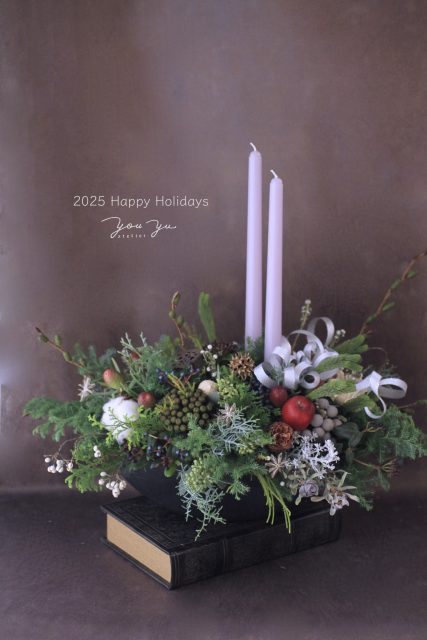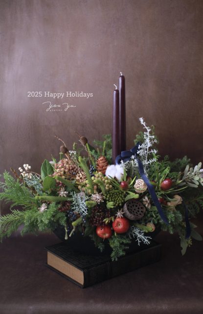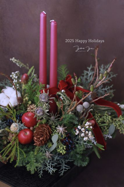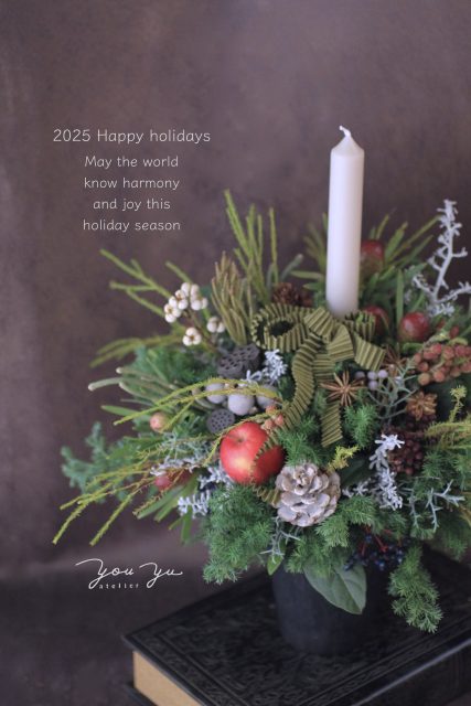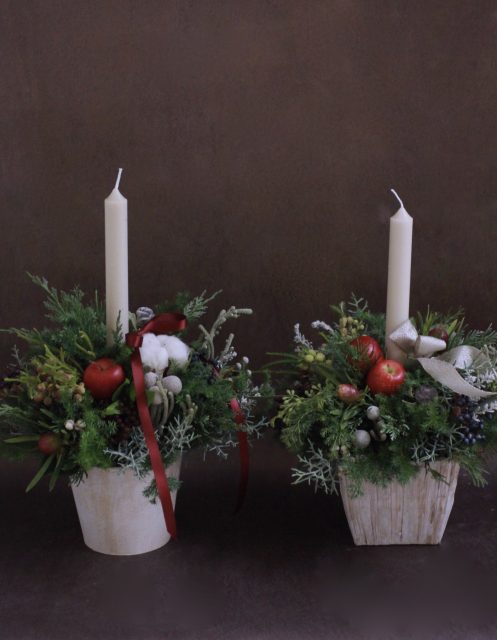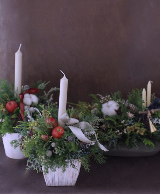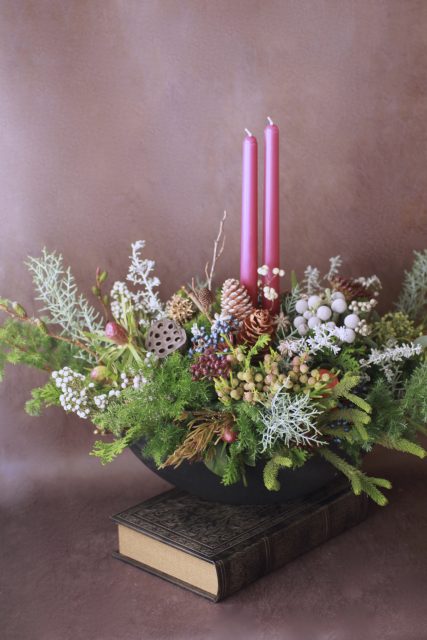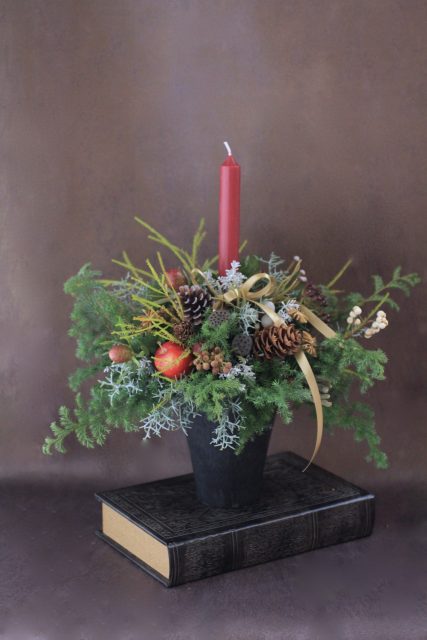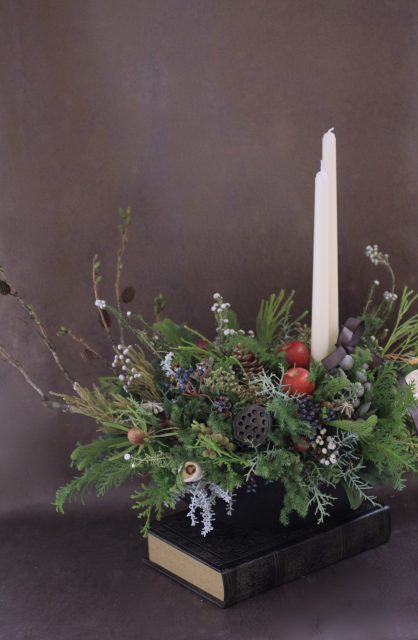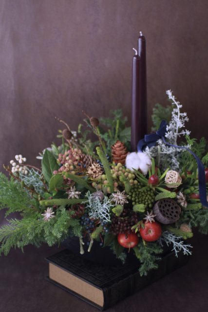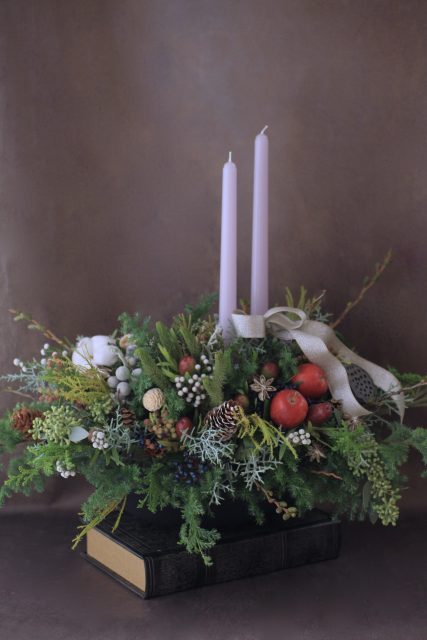 コニファーの森の香りの中で、キャンドルを使ったアレンジメントを作っていただきました。