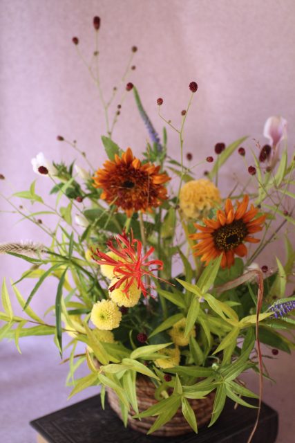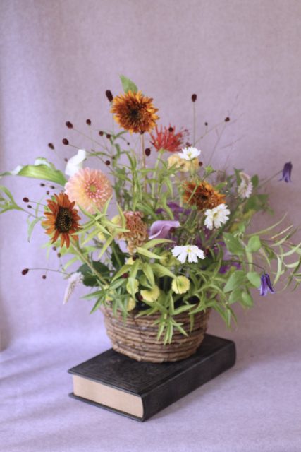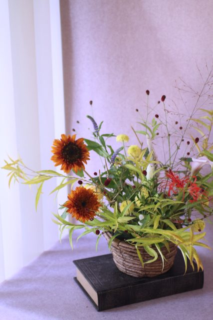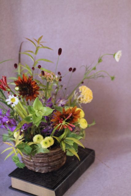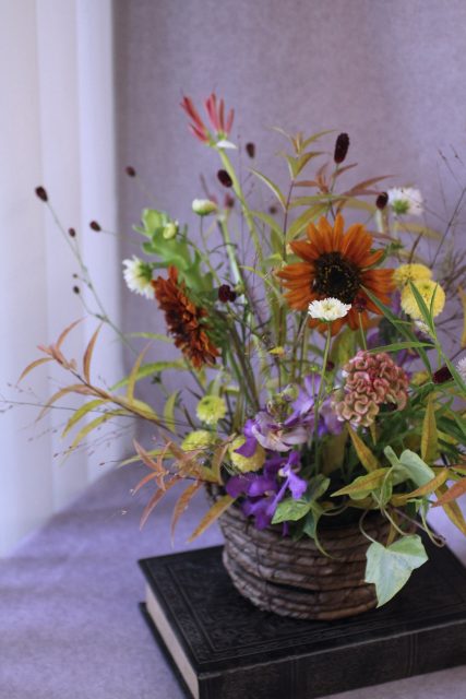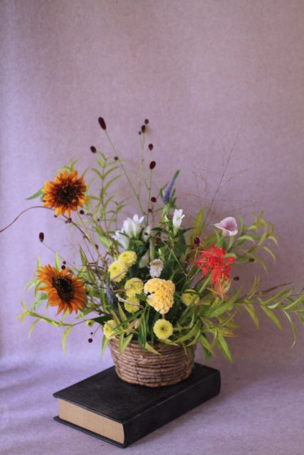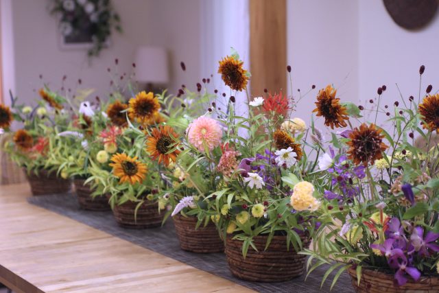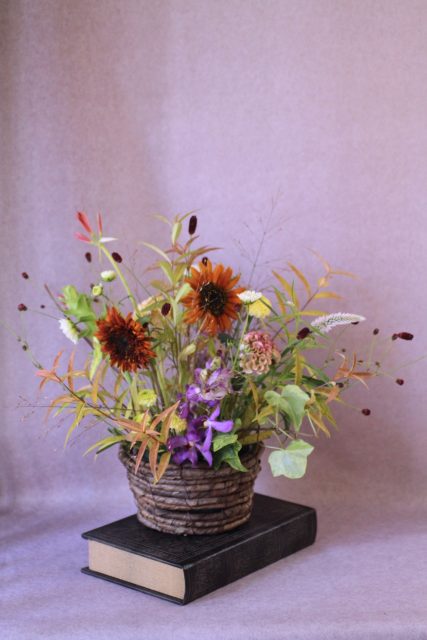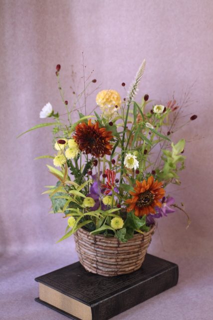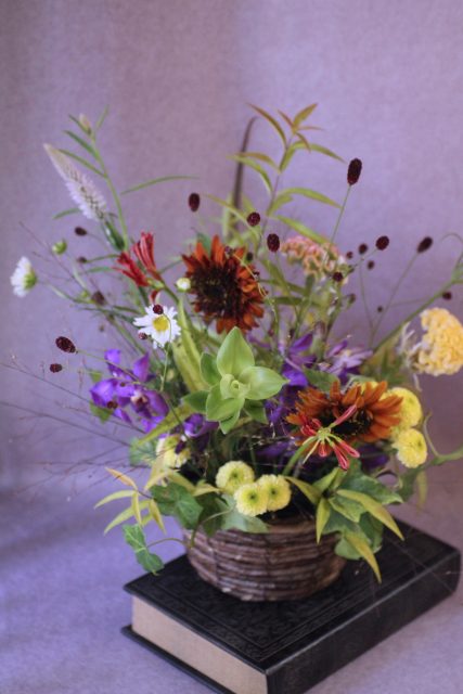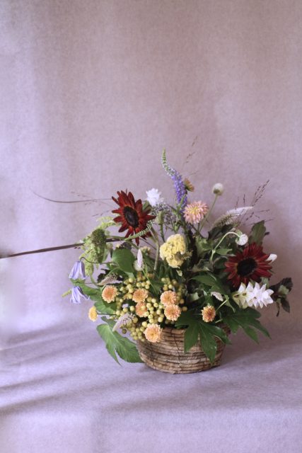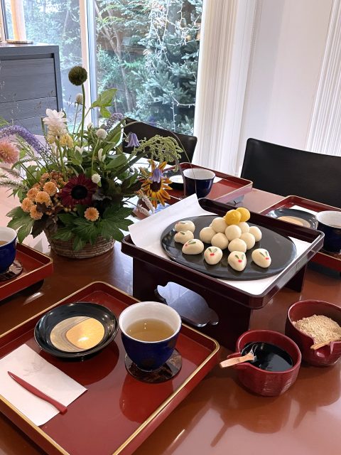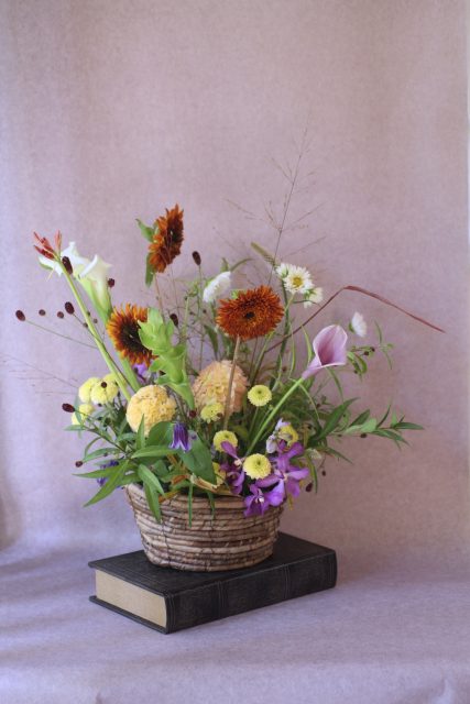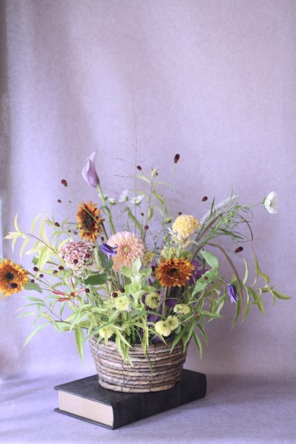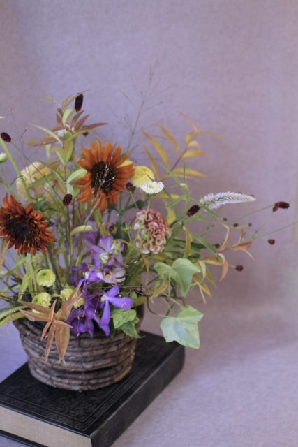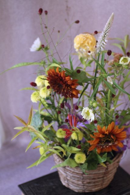 9月に入り、朝夕の風が少しずつ涼しくなってきましたね。この時期に訪れる日本の伝統行事「十五夜」は、満月を眺めながら秋の実りに感謝する風習があります。今年の十五夜は10月6日だそうですが、教室では一足早く秋のお花のアレンジメントとお団子を飾り皆んなで和やかなひと時を過ごしました。